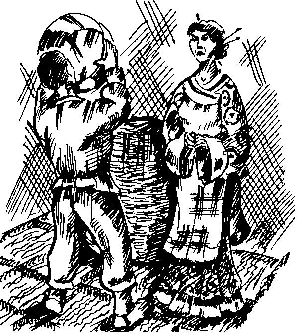 Син Мын вошел в хижину, взял у девицы тыквенную бутыль и стал пить глоток за глотком, а когда напился и хотел уйти, девушка его за руку крепко взяла и сказала: