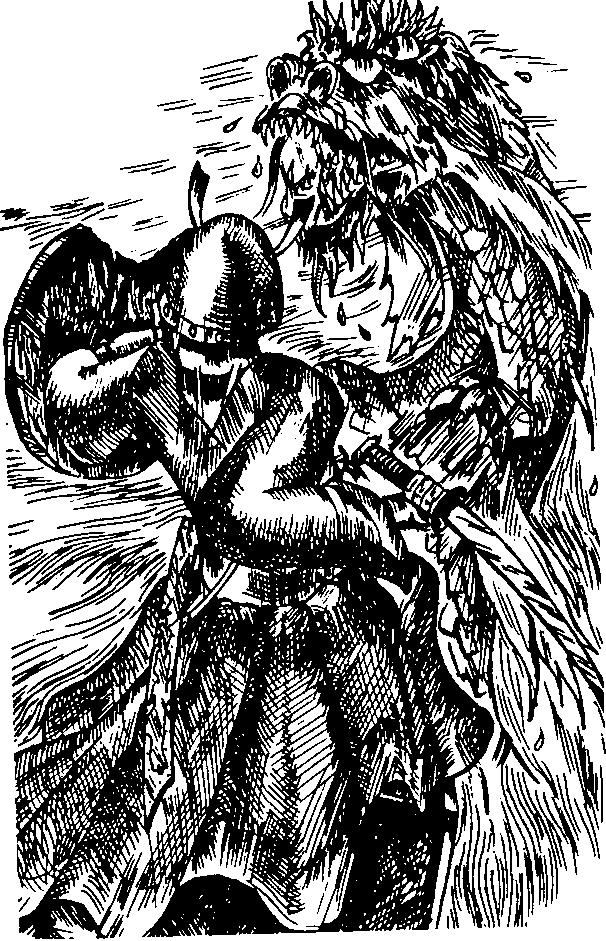 Затем И снова отправился на юг, к великому озеру, в котором жил огромный удав Башэ, глотавший всех, кто осмеливался плыть в лодке. Долго искал великий стрелок змея. Наконец из волн высунулась огромная голова. Поднимая огромные волны, Башэ двинулся к утлому челну. Змей высоко поднял голову, высовывая красный, как пламя, язык. И выпустил несколько стрел. Все они попали в цель, но живучий змей продолжал плыть к лодке. Тогда И вытащил меч и разрубил его. Зловонная кровь хлынула в воду. А рыбаки громкими, радостными криками приветствовали избавителя.