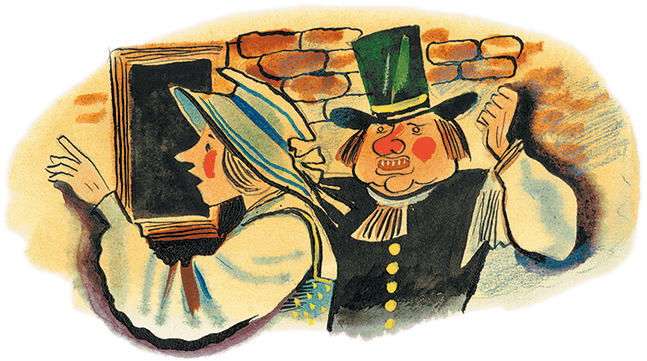 – Что тебе нужно от меня, страшный карлик? – закричала она. – Уходи, уходи! Я не терплю таких шуток!
