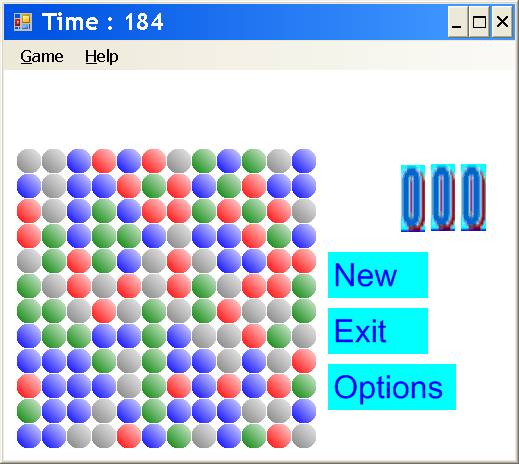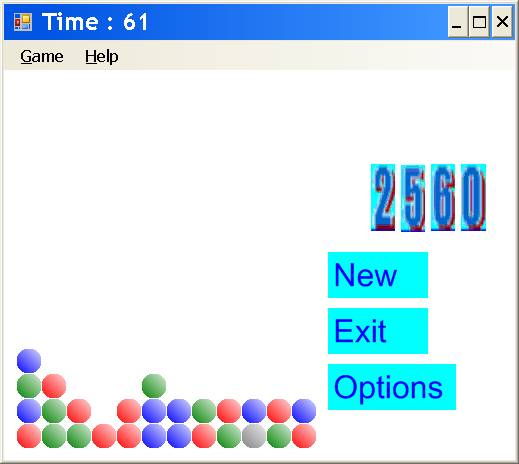 В этой игре для отображения поля игры не используются графические файлы (такие файлы формата (.bmp) применяются только для подсчёта очков), поэтому разноцветные круги (по-английски: circle) рисуются при помощи метода FillEllipse класса Graphics из пространства имён System.Drawing в строке: