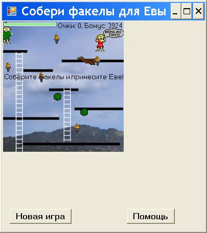 Ниже мы видим указание игроку, управляющему изображением Адама: “Соберите факелы и принесите Еве”.