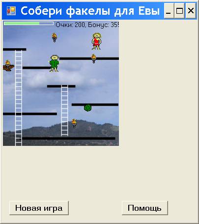 2. Через несколько секунд поясняющая надпись “Соберите факелы и принесите Еве” исчезает (чтобы не заслонять игровое поле).