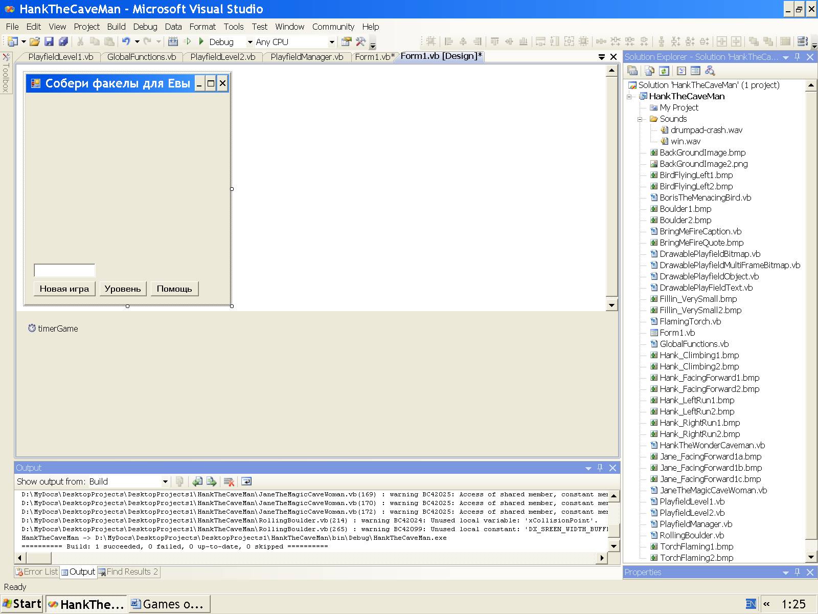 В панели Solution Explorer выделяем все графические файлы (с нажатой клавишей Ctrl), а в панели Properties в свойстве Build Action (Действие при построении) вместо заданного по умолчанию выбираем значение Embedded Resource (Встроенный ресурс) для всех этих файлов.