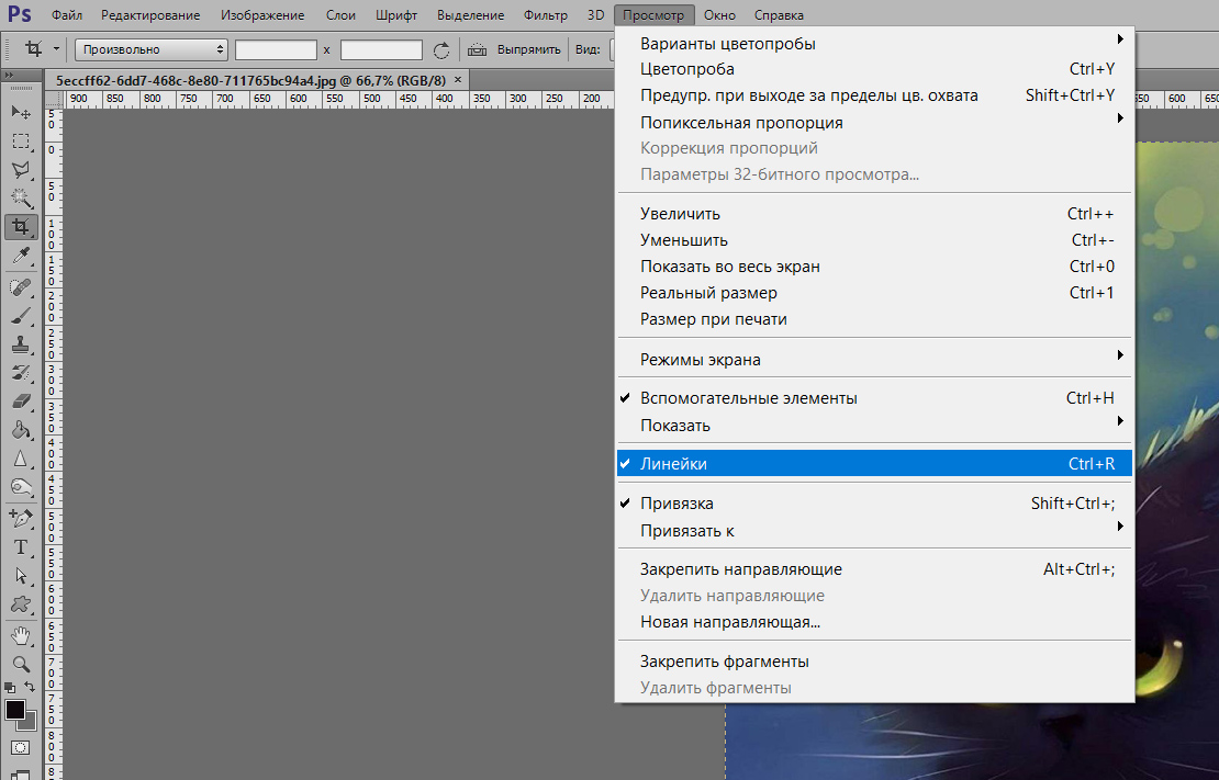 Обычно ноль линейки начинается от левого края холста (окна, где расположено изображение), но можно, удерживая левую клавишу мышки в верхнем углу пересечения линеек, сдвинуть ноль в нужном направлении.
