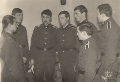 Заместителями командира взвода недолго были Воробьев и Александр Орлов. Воробьев после падения на спину с перекладины был уволен из училища по состоянию здоровья, а Саня Орлов из-за конфликтов с комбатом был снят с должности и переведен в первую группу свободным сержантом, то есть стал простым курсантом с сержантскими лычками. Затем заместителем командира взвода был назначен Шура Ишмаев, командиром 1-го отделения был Петя Чернявский, 2-го отделения – Валера Соловьев. В составе группы также успешно прошли обучение Вова Артемов, Толя Рябчиков, Вася Логинов, Вова Ситников, Саша Щербич, Слава Панов, Вова Целковик, Юра Аксенов, Сергей Кислов, Сергей Маслов, Боря Горшевский, Сергей Кленин, Вова Рассомахин. Всех помню очень хорошо.