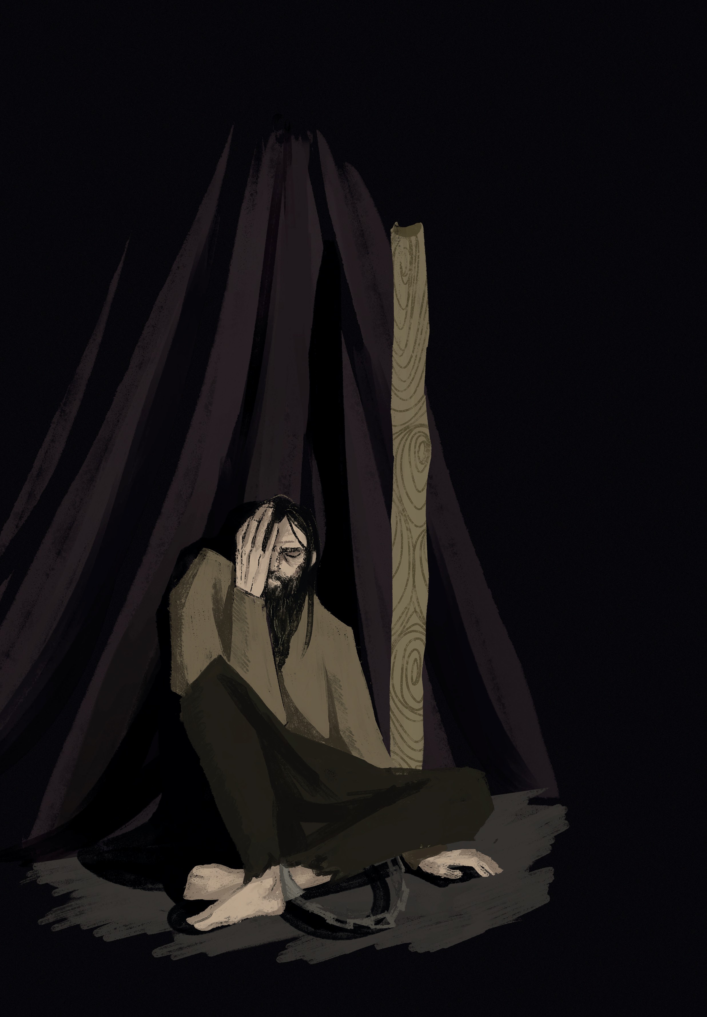 Вашандур и Йарир метнулись ко Второму, попытались поднять его, но цепь из воронёной стали не давала старцу возможности хотя бы приподняться с сырой земли. Уже спустя пару секунд двое йордов прилагали все силы к тому, чтобы вырвать столб из земли. К досаде спасителей Мудреца, столб оказался вкопан так глубоко и крепко, будто бы над ним трудились не обычные люди, а туры с отдалённых от Охо островов Клыки. Видимо, силы таких же туров требовались и для извлечения столба из тверди земли. Усда тем временем, видя страдания, испытываемые Вторым, приложила к его иссохшим, потрескавшимся губам свою флягу, наполненную водой, которая была набрана из той самой реки, где лазутчики проникли в стан врага.