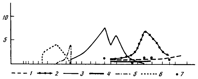а — подвески-топорик; б — подвески-ложечки; в — подвески-мечи; г — подвески-ножны; д — подвески-ключи; е — подвески-гребни; ж — граница Руси XII–XIII вв.