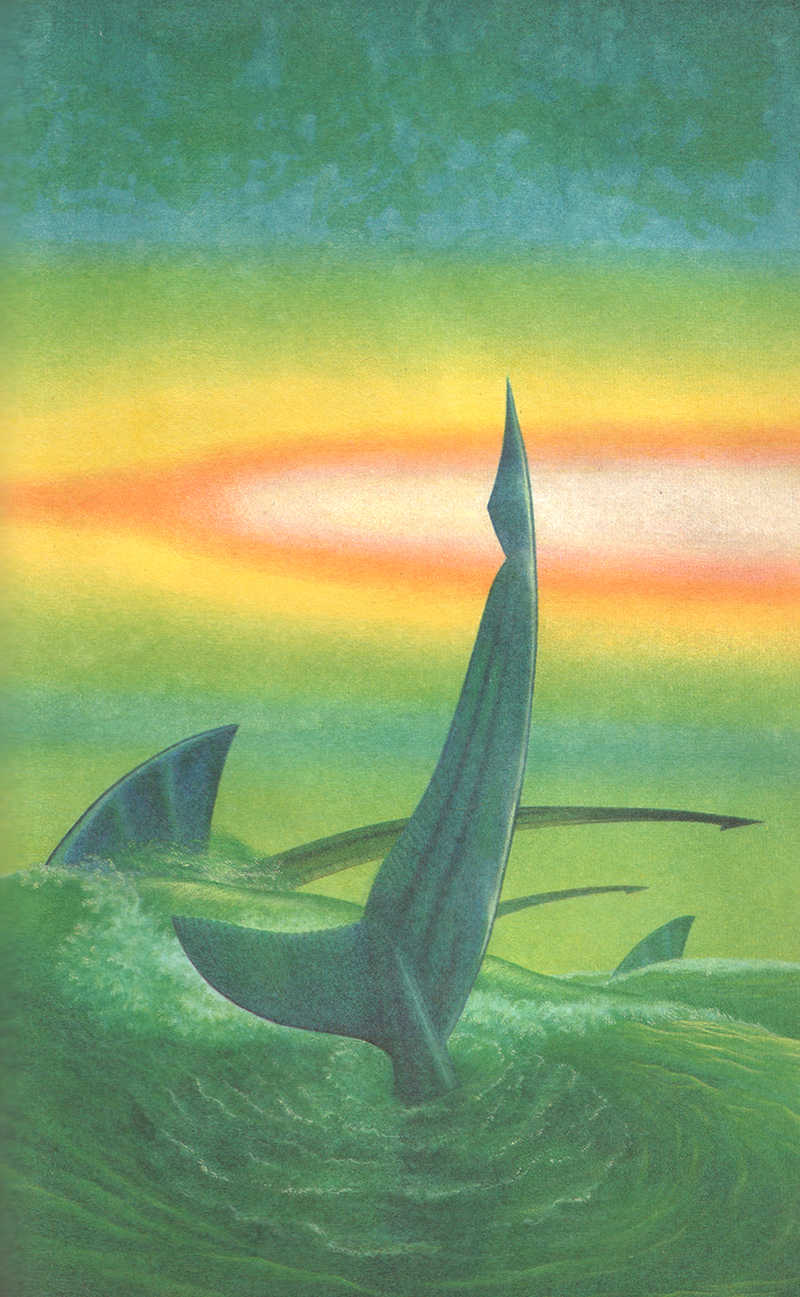 Вот промелькнул острый плавник, разрезая мраморную волну как бритвой.