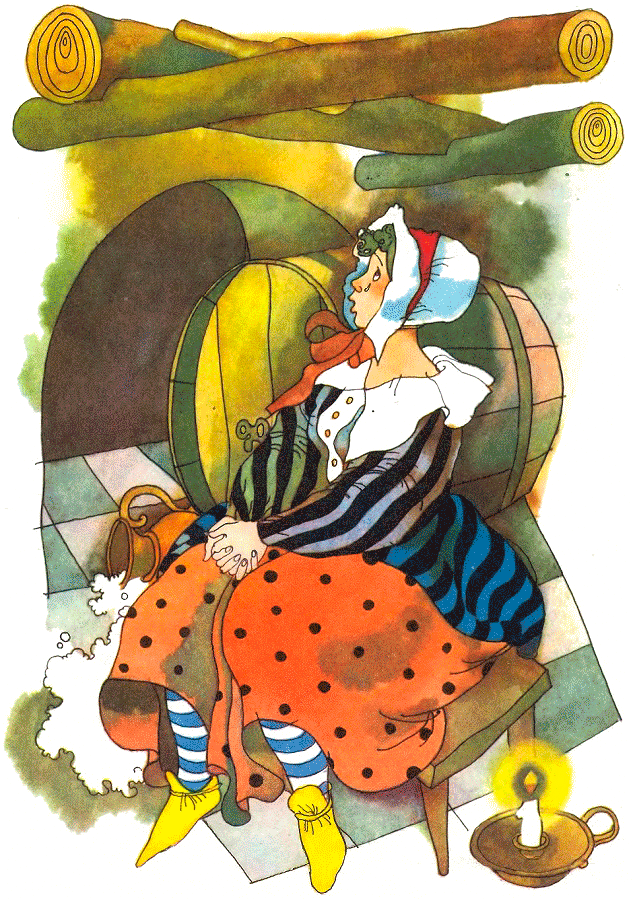 А наверху думают: что случилось, почему она так долго цедит пиво? Спустилась мать в погреб и видит: сидит дочка на скамье и плачет, а пиво уже по полу потекло.