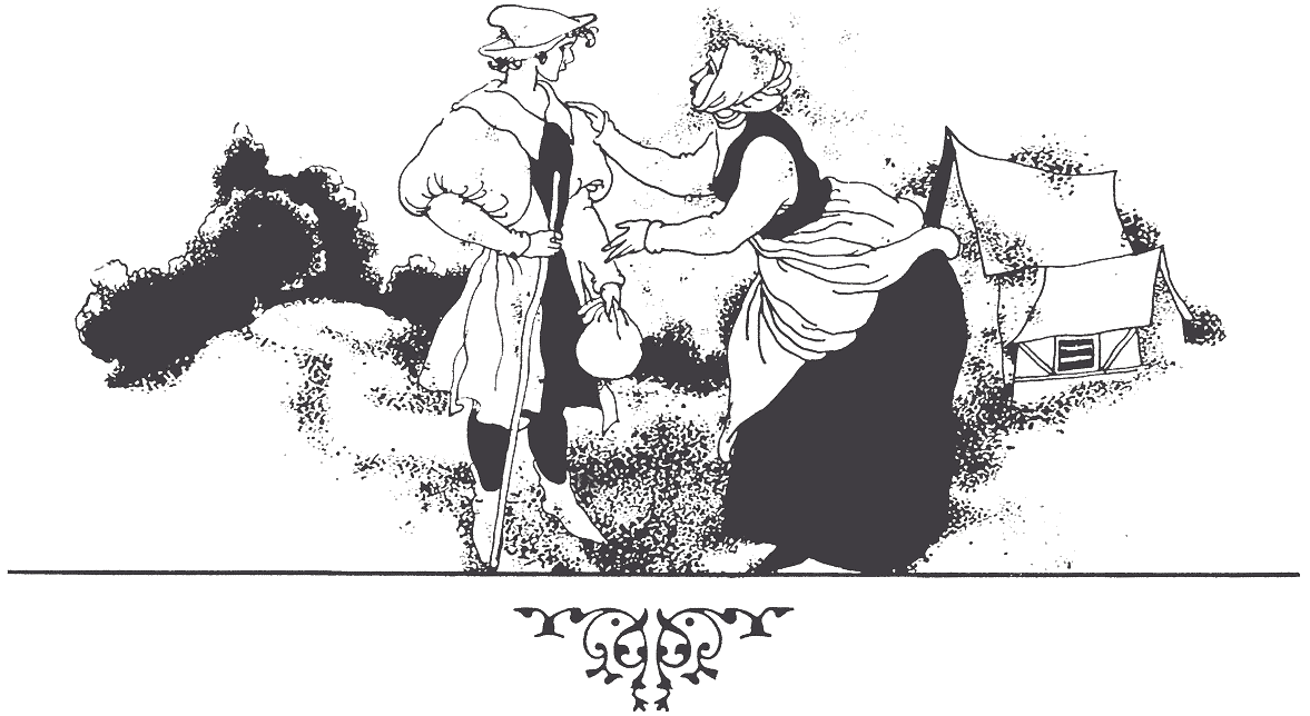 И вот юноша дошел до замка Рыжего Эттина, постучал в дверь, и его впустили. У огня сидела старуха. Она рассказала юноше о том, что случилось с его старшим братом, но юноша не испугался.