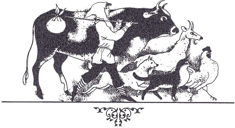 Пошла старушка дальше. Шла-шла, увидела быка.