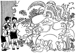 Видно, живет в лесной чаще кто-то хитрый и проказливый. Не любит он, когда ребята забредают в его царство, шумят, пугают птиц.