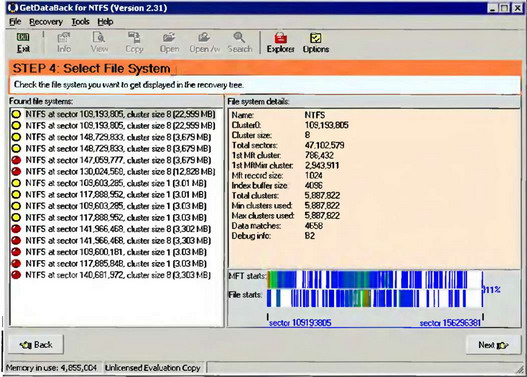 Программа сканирует MFT и выводит все файлы, которые только удалось найти (включая удаленные), распределяя их по каталогам (при условии, что соответствующие индексы не повреждены). Если данная утилита встретит BAD-сектор, она завершит работу без предупреждения. Зато она поддерживает удаленное восстановление, создание образов дисков, а также мощную систему поиска по файлам (дата/размер). Возможность поиска по содержимому, к сожалению, отсутствует, что не может не разочаровывать. Представьте себе, что вы хотите восстановить файл со своей диссертацией, ключевые слова которой вам известны, а вот в каких секторах они располагаются — не ведомо. То же самое относится и к поиску файла записной книжки с телефоном приятеля. Тем не менее, для большинства рядовых задач по восстановлению возможностей GetDataBack хватает с лихвой. Демонстрационную версию программы, предназначенную для NTFS, можно раздобыть по следующему адресу: http://www.runtime.org/gdbnt.zip. Как и большинство демонстрационных версий, она обладает усеченными функциональными возможностями — все показывает, но восстанавливать ничего не дает. Тем не менее, демонстрационная версия все же позволяет открывать файлы ассоциированными с ними приложениями. Важно отметить, что GetDataBack не является доктором, подобным NDD или chkdsk. Она не лечит разделы, а всего лишь позволяет скопировать из них уцелевшие файлы.