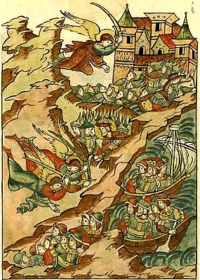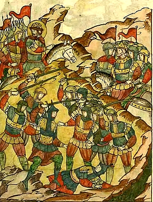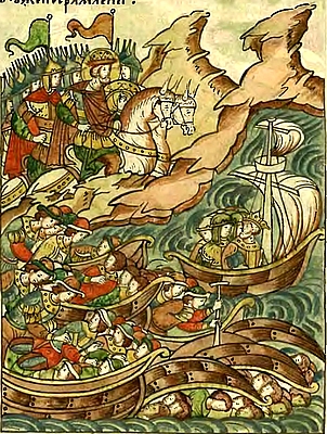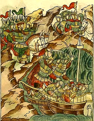 Поэтому представляется весьма вероятным такой маршрут движения русского войска, какой предположил Г.Н. Караев. Значительную часть русского войска составляли пешие дружины, которые для скорости переправлялись к месту сражения на речных судах (это явствует из текста летописи) по течению Волхова и Невы. Но на последнем участке пути от верховьев Невы до устья Ижоры (до места расположения шведского лагеря) находился широкий прямой плес Невы, создававший от устья Ижоры прекрасный обзор всего течения реки на много километров вверх по течению. Если речные суда с пешей частью русского войска пошли по этому плесу, они были бы обнаружены шведскими караульными еще на далеком расстоянии от устья Ижоры и тогда внезапное нападение стало бы невозможным. Поэтому Г.Н. Караев предположил, что русские суда вошли в реку Тосну, впадающую в Неву выше устья реки Ижоры, и прошли вверх 6 км до места наибольшего сближения с течением притока Ижоры — речки Большой Ижорки, по суше дошли до Большой Ижорки и спустились вдоль лесистого берега к ее устью, находившемуся вблизи места впадения реки Ижоры в Неву. Таким образом, русскому войску удалось неожиданно напасть на шведский лагерь не с Невы (откуда шведы могли скорее всего ожидать нападения), а с суши [12] .