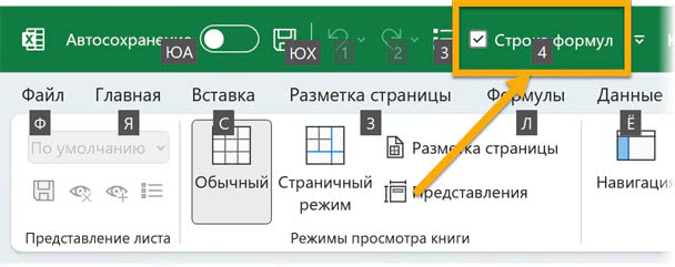 Так как командам на панели быстрого доступа соответствуют цифры, получается, что добавление команды туда – это возможность создать собственное сочетание клавиш. Например, вы хотите, чтобы строку формул можно было скрывать быстро. Добавьте ее на панель быстрого доступа: правая кнопка мыши по флажку «Строка формул» на вкладке «Вид» (View -> Formula Bar).