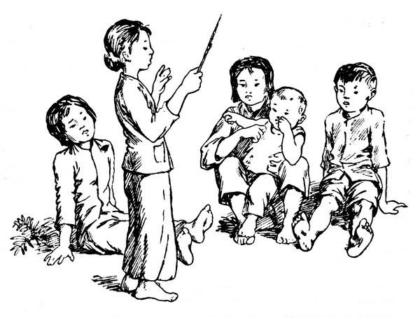 Малышка ждет винтовочных выстрелов. Они означают начало боя и здесь всегда хорошо слышны. Малышка и остальные дети к ним давно привыкли.