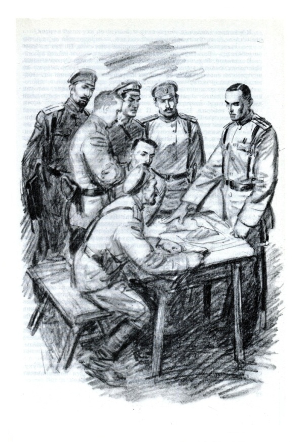 В комнате затихли. Никто из нас не слышал таких обнаженных, ошеломляющих суждений о предмете фортификации… А Карбышев вновь схватил карандаш и решительно, даже, как показалось мне, с ожесточением, принялся водить им по карте, очерчивая тут и там высоты, господствующие над местностью. Работая, говорил отрывисто: «Опорный пункт для взвода… Еще для взвода… Здесь расположим ротный гарнизон…» Положив на карту руку, как пианист на клавиши, он объединил группу высот и высоток как бы в аккорд. Сказал: «Узел сопротивления…» Дальше, когда дело дошло до инженерных подробностей, мы увидели под карандашом Карбышева как бы серию небольших, из подручных материалов, окопов-крепостей — в бою самостоятельных и вместе с тем по-братски поддерживающих друг друга ружейным, пулеметным и артиллерийским огнем.