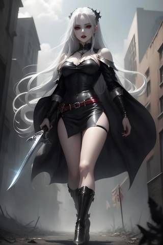 Прямо перед ними с лицом убийцы стояла девушка среднего роста. Ее серебряные волосы разваливались на незримом ветру, а кроваво-красные глаза сияли.