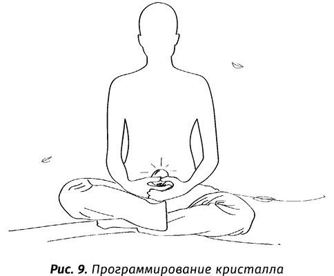 После того как вы очистили свой кристалл и восстановили его энергию, войдите с ним в контакт. Уединитесь в спокойном месте и посидите несколько минут, держа камень в руках до тех пор, пока не ощутите единения с ним (см. рис. 9). Представьте его окруженным светом и любовью и произнесите: «(Название кристалла), ты посвящен высшему благу», затем четко сформулируйте ваше намерение относительно него – например: «(Название кристалла), ты защитишь (или исцелишь)…», укажите кого и от чего. Если кристалл предназначен для исцеления от чего-то конкретного, назовите это заболевание или состояние. Повторите вашу речь несколько раз, чтобы закрепить программу в кристалле.