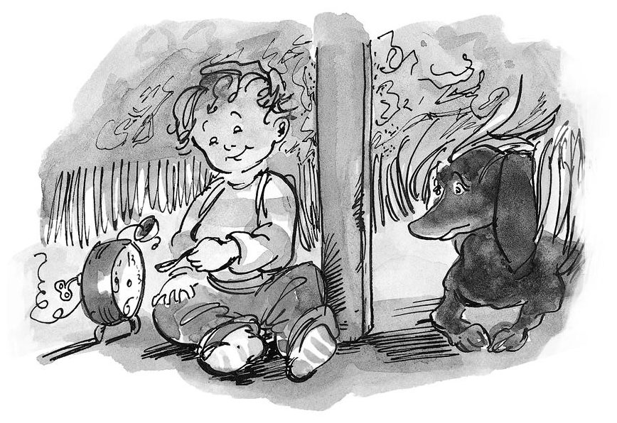 Папа поднял часы высоко-высоко. Мама опустила гири, теперь все ждали, чтобы большая стрелка остановилась на двенадцати, потому что было как раз шесть часов.