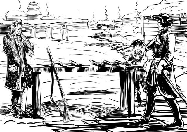 Петр ходил вдоль стола, на который были выложены мушкеты из ящика. И внимательно их осматривал.