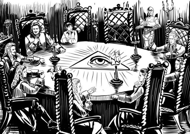 Большой стол, окруженный девятью стульями с высокими резными спинками. На нем скатерть с очень подозрительным узором. Во всяком случае символы, изображенные на ней, наводили на дурные мысли.