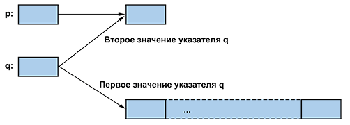 • Диспетчер свободной памяти может повторно использовать память, на которую ссылался указатель