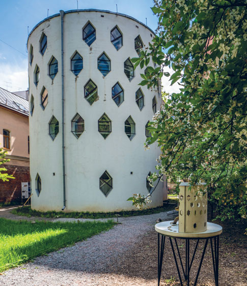 Мельников экспериментировал с формами – их многообразие можно увидеть в его проектах. Собственный дом он сделал круглым: в нем один круглый цилиндр на 1 / 3 вставлен в другой. Это оказалось еще и экономно, ведь при равной площади периметр круга меньше периметра квадрата (экономия материала на стены составляет более 27 %!). Архитектор разработал для каркаса необычную кирпичную кладку, похожую на соты, благодаря чему достигалась высокая прочность стен. Ненужные проемы закладывались битым кирпичом и мусором.