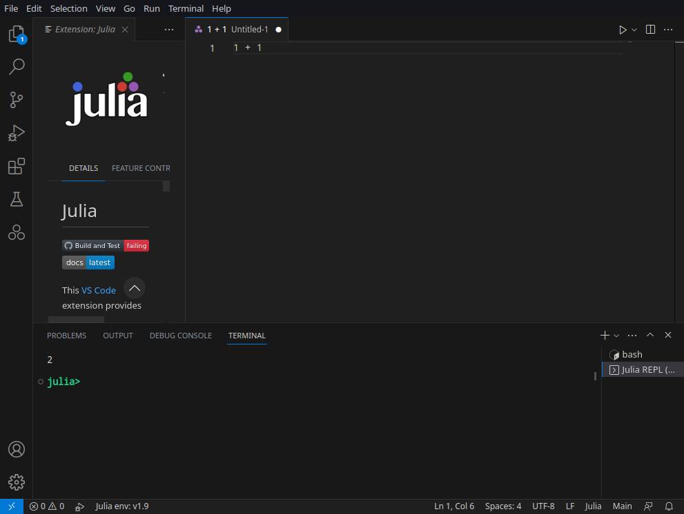 Julia имеет модульную конструкцию – компактное ядро, функциональность которого расширяется внешними «пакетами». Дистрибутив Julia поставляется с небольшим набором этих пакетов, называемым «стандартной библиотекой», и мощным менеджером пакетов, который может загружать пакеты, предварительно компилировать, обновлять и разрешать зависимости, и все это с помощью нескольких простых команд.