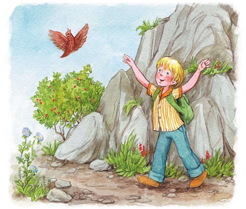 Они с папой стали подниматься в гору. Какой потрясающий вид им открылся, когда они добрались до вершины! Но дальше тропинка пошла вниз, а потом предстоял новый подъём. Путь до пастбища оказался неблизким, и ноги Каоса шли всё медленнее. Вдруг перед ними взмыла в небо птица. Папа сказал, что это белая куропатка. Каос задумался: каково это – уметь летать? Представь, что у тебя есть крылья и достаточно лишь слегка поднимать и опускать их, чтобы летать как птица. Каос попробовал махать руками и пошёл быстрее, чтобы разогнаться. Ого! Вот он взлетел и парит в небе, лишь изредка взмахивая крыльями, чтобы не потерять скорость и высоту. Каоса так захватила эта фантазия, что он споткнулся и упал, растянувшись во весь рост. А рюкзак перелетел через голову и плюхнулся на землю перед ним.