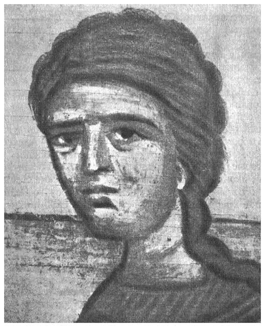 Рис. 4. Икона «Рождество богоматери» середина XIV в. Деталь. Служанка с тревогой смотрит на пожилую роженицу Анну.