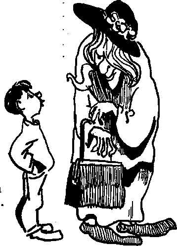 Сыщик ходил по городу три дня. И не мог найти третью ведьму. Он вернулся опять к сгоревшему дому. Вдруг у забора он увидел черную сумку. Сыщик заглянул в нее. В черной сумке лежали леденцы — красные петушки. «Где же хозяйка этих отравленных леденцов?» — подумал сыщик. На заборе он увидал маленький черный квадратик. Сыщик нажал на него рукой. В заборе открылась дверца. Сыщик взял черную сумку и вошел в потайную дверцу. Оказался в потустороннем, неведомом месте.