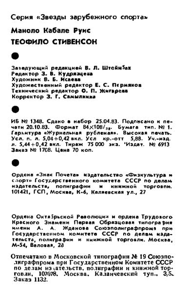 Ордена «Знак Почета» издательство «Физкультура и спорт» Государственного комитета СССР по делам издательств, полиграфии и книжной торговли. 101421, Москва, Каляевская ул., 27.