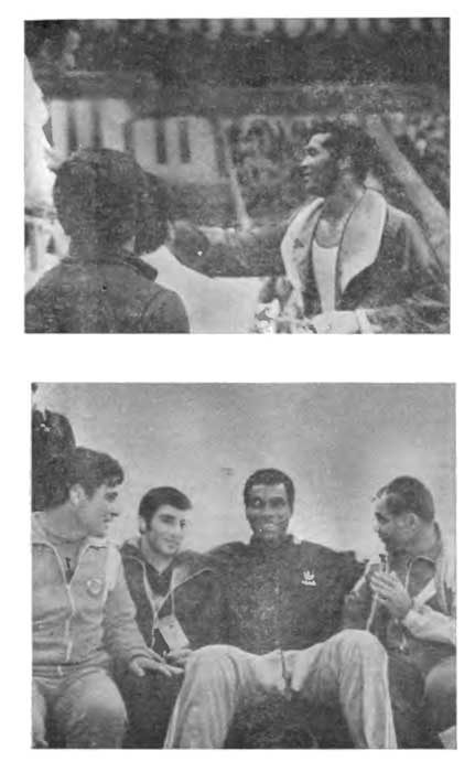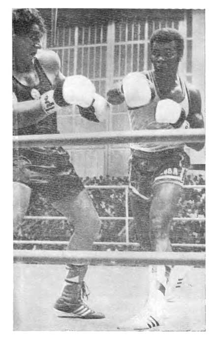 17-й день, среда. 6 час. 50 мин. Вторая и третья группы — ОФП и СФП. Разминка на дорожке стадиона — 3 круга. Спринтерский бег — 5x40 м, 3x400 м в среднем темпе, быстро, легко; 5x40 м, перерыв — 3 мин. Работа на снарядах — 3 раунда по 3 мин. 50 сек. с минутными перерывами. Повышение быстроты действий в конце раундов. Другие упражнения. Продолжительность — 65 мин.
