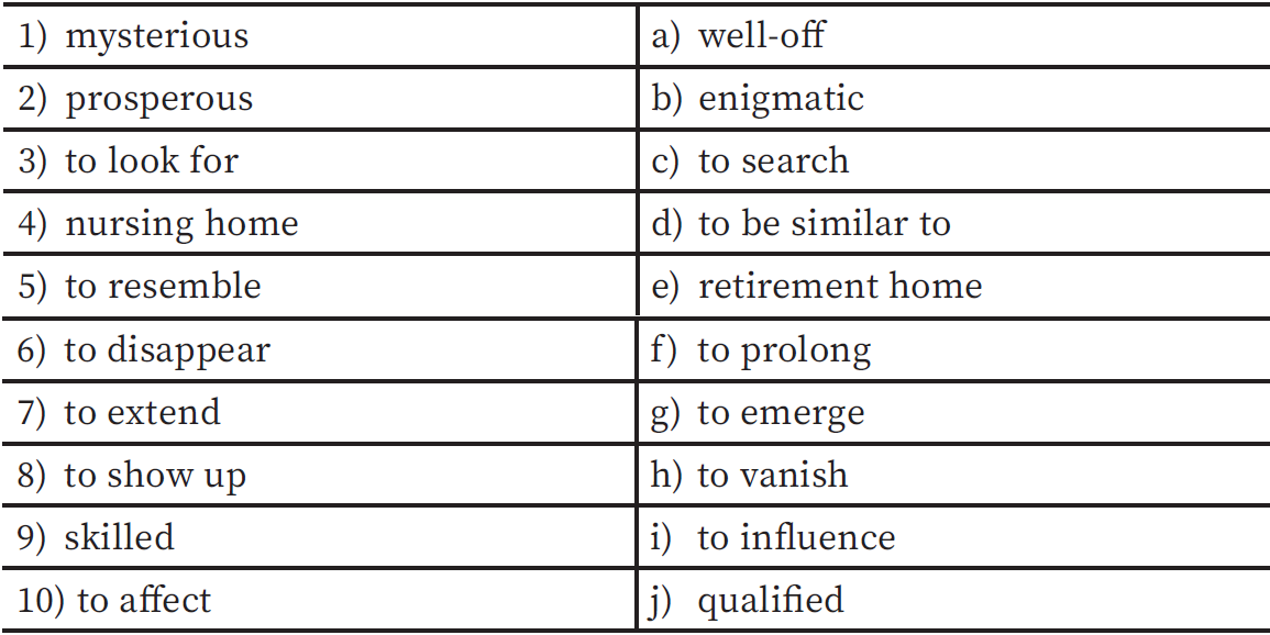 Exercise 4. Match each word with its synonym:
