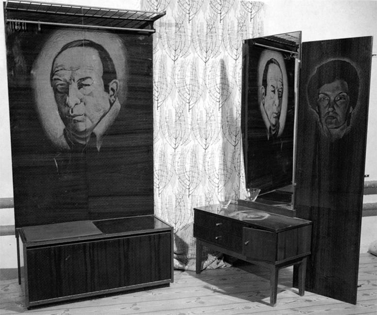 В 1994 году московский художник Антон Ольшванг показал в Русском музее инсталляцию «Полиэфиры», посвященную шкафам и «стенкам» из ДСП как памятникам целым поколениям своих безвестных советских владельцев. На дверцы шкафов, столешницы, трюмо по заказу художника были при помощи медицинского сверла нанесены гравированные изображения людей, сделанные по фотографиям в удостоверениях личности. «Портреты» на мебели недвусмысленно походили на кладбищенские. Название выставки «Полиэфиры» (химические составы, придающие этой дешевой мебели глянец) указывает одновременно и на магическое связующее, запускающее в действие машину мирового пространства, и в сторону романтической вечности, где обитают небожители, и в сторону анестезии – покоя для каждой души и тела. Все эти смыслы, как атмосфера вокруг брутальных изображений и полуразвалившейся мебели, звучат грустной иронией, жалостным обмирщением когда-то величественных понятий Ничто и Всё. Аналогичный пример намеренного материалистического упрощения темы вечности показывает инсталляция Роберта Гобера «Без названия» (2000–2001), представляющая собой имитацию открытого подвала, вход в который затянут цепью, а за дощатой задней стенкой мерцает какой-то неясный свет. Эту мягкую версию вечности как бани с пауками Гобер предложил для павильона США на Венецианском биеннале 2001 года.