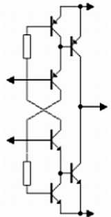 Благодаря применению дополнительных транзисторов VT5, VT6 исключены сквозные токи.