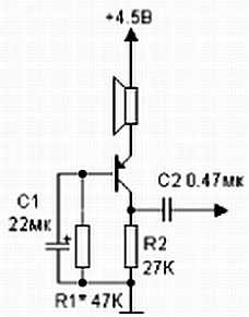3. Микрофонный усилитель с использованием в качестве микрофона низкоомной динамической головки.