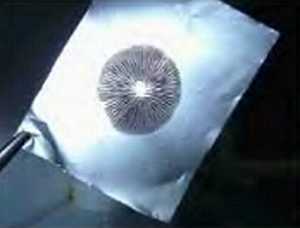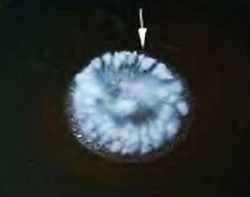 Только выпав из шляпки споры представляют собой влажные набухшие клетки с высоким процентом всхожести. С течением времени они высыхают, разрушаясь и сжимаясь ближе к центру, и им уже не так просто прорасти. Вероятность прорастания обезвоженных спор увеличивается после замачивания их в стерильной воде. Простерилизуйте в течении 30 минут при 1,05 ат (15 psi) пипетку или шприц и пробирку с водой или колбу Эрленмейера на 25-250 мл с горлышком заткнутым ватным тампоном (лучше ватной пробкой, делается также как для пробирок — прим. ред.) и накрытым алюминиевой фольгой. Возьмите немного спор на кончик скальпеля и опустите их в стерильную воду. Плотно закройте и дайте отстояться 6-12 часов. Выждав положенное время наберите немного воды со спорами в пипетку или шприц и проинокулируйте несколько чашек с агаром одной или двумя каплями. Помните о том, что споровый отпечаток обычно берётся в нестерильных условиях и таким способом вы даёте возможность прорасти не только грибным, но и спорам контаминантов.