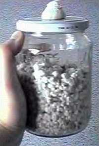 2. Выбрав самые красивые банки с мастер-грибницей, разбейте мицелий ударяя банки о шину или похлопывая ладонью. Грибница должна легко разделиться на отдельные зёрна. Встряхните столько мастер-банок сколько вам может потребоваться, учитывая что каждой из них вполне достаточно для инокуляции от десяти до двенадцати литровых или от семи до девяти двухлитровых банок. Перетряхнув, ПОСТАВЬТЕ ЭТИ БАНКИ С ГРИБНИЦЕЙ НА ОТДЕЛЬНУЮ ПОЛКУ И ВЫЖДИТЕ ОТ ДВЕНАДЦАТИ ДО ДВАДЦАТИ ЧЕТЫРЁХ ЧАСОВ ДО ПОСЛЕДУЮЩЕГО ИСПОЛЬЗОВАНИЯ. Этот период выжидания очень важен, т. к. в некоторых из них грибница не сможет развиваться дальше, обычно по причине бактериального заражения. Если бы эти банки были использованы для дальнейших пересадок, заражение разнеслось бы ещё на десять банок.