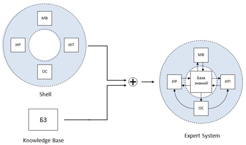 Рис. 5. Экспертная система = Оболочка + База знаний