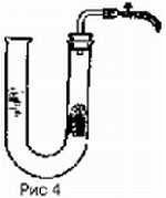 Нижнее отверстие пробирки с твердым веществом должно быть достаточно велико (2–3 мм), так как через него во время действия прибора проходят два тока жидкости: вверх — реагирующая жидкость, вниз — более тяжелый раствор, содержащий продукты реакции между жидкостью и твердым веществом (обычно раствор соли). На рисунке 4 изображен приборчик для получения газов. В одно из колен U-образной трубки в корзиночке из медной сетки помещены кусочки твердого вещества (цинк, мрамор и др.). В трубку наливают разбавленную кислоту. Когда зажим закрыт, прибор не действует.