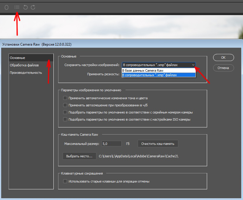 2. Выберите основные, кликните по галочке сохранять настройки изображений. Выберите в сопроводительных «.xmp» файлах.