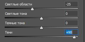 2. Смещайте ползунок тени до получения требуемого эффекта (+39). Тени стали нормальными.