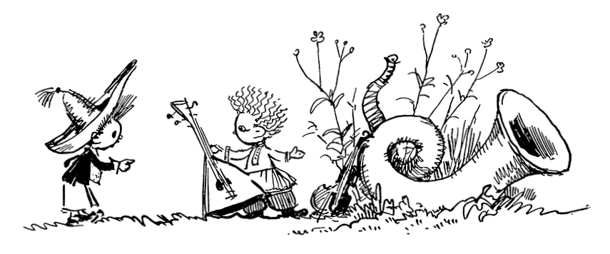 Гусля дал ему большую медную трубу. Незнайка как подует в неё, труба как заревёт!