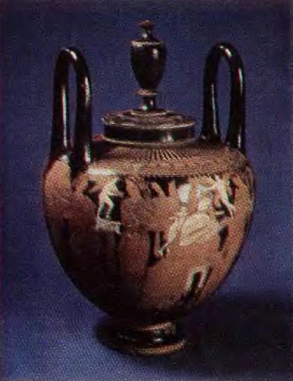 Пантикапей. Расписная ваза-кальпида IV в. до н. э. Глина, краски, позолота.