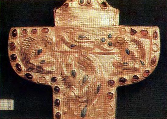 Горгиппия. Склеп 1975 г. Короткий меч и ножны. Золото, гранаты, бирюза.