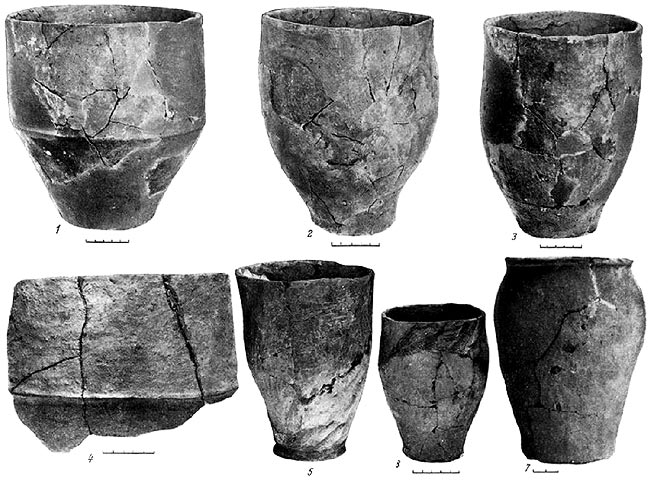 Глиняная посуда середины I тысячелетия н. э. поражает стабильностью форм. Масса обломков и целых сосудов относится только к двум типам горшков.