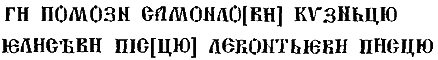 Подписи трех мастеров есть на кованом медном ларце, хранящемся в Кракове. Ларец украшен гравированными изображениями разных святых и сценами из жития Кузьмы и Демьяна. Дата — XIV в.; место изготовления, возможно, Новгород. В палеографическом отношении интересно частое применение лигатур. На крышке ларца подписи: