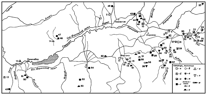 С 1962 г. начинает работы Ферганская экспедиция Государственного Эрмитажа под руководством Н.Г. Горбуновой, которая систематически исследует поселения древнего периода, а также синхронные могильники в разных частях Ферганы. Работы ее продолжаются до настоящего времени (Горбунова Н.Г., 1970а, б; 1971а, б, в; 1979; 1983). Исключительно ценные результаты получены в ходе многолетних работ на памятниках около Ашта в северо-западной Фергане Е.Д. Салтовской, которая обобщила их в своей диссертации (Салтовская Е.Д., 1971). Раскопки большого масштаба проведены археологами Киргизии под руководством П.Н. Кожемяко в зоне Андижанского водохранилища в 1964–1967 гг. Наибольший интерес представляют исследования на Кулунчакских поселениях шурабашатской культуры. Материалы одного поселения рассмотрены в диссертации П.П. Гаврюшенко (1970). Работы в этом оазисе были продолжены Д.Ф. Винником (Винник Д.Ф., Брыкина Г.А., 1968).